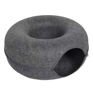 Give your cat the ultimate space for rest and play with this interactive round donut bed and tunnel. Soft, plush materials provide a cozy nest for napping, while the tunnel design encourages curiosity and play, making it perfect for active kittens or lounging adult cats. Its round, cushioned shape also creates a safe, secure spot that cats naturally love to curl up in.